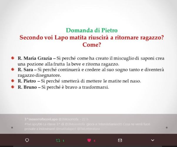 TwLapo_Domande 3 Published novembre 24, 2017 at 685 × 569 in TwLapo ‹ Return to post Lascia un commento Cancella risposta Δ Il mio segno particolare Il mio segno particolare Tra libri e mare Articoli recenti Felice e l’invenzione del mare Video: La gita al pastificio Pastello (Estratto dal libro “Storia di una matita. A casa”) Parole-conchiglia e altri giochi lessicali Fate i tuoni – Scatenate tempesta, seminate poesia Per chi volesse una copia di “Il secondo lavoro di Babbo Natale” in ucraino Categorie Il Vicolo (8) Libri (36) Pacunaimba (3) Per la scuola (12) Percorsi di Lettura (34) Storia di una matita (7) Traduzioni (1) Segui il blog via email Inserisci il tuo indirizzo email per seguire questo blog e ricevere notifiche di nuovi messaggi via e-mail. Indirizzo email: Iscriviti Il secondo lavoro di Babbo Natale Il secondo lavoro di Babbo Natale Search for... Ricerca Commenti recenti Italiano in Festa: C… su Fate i tuoni – Scatenate…Italiano in Festa: C… su Il Mio Segno ParticolareItaliano in Festa: C… su La trilogia di Babbo Nata…Italiano in Festa: C… su La trilogia di “Storia d…Lorenzo su Il Mio Segno Particolare: podc… Archivi settembre 2025 ottobre 2024 febbraio 2024 novembre 2023 ottobre 2022 luglio 2022 Maggio 2022 febbraio 2022 dicembre 2021 settembre 2021 Maggio 2021 gennaio 2021 dicembre 2020 ottobre 2020 settembre 2020 luglio 2020 Maggio 2020 aprile 2020 marzo 2020 gennaio 2020 Maggio 2019 marzo 2019 febbraio 2019 gennaio 2019 dicembre 2018 novembre 2018 agosto 2018 Maggio 2018 marzo 2018 febbraio 2018 gennaio 2018 dicembre 2017 novembre 2017 settembre 2017 giugno 2017 aprile 2017 febbraio 2017 gennaio 2017 ottobre 2016 settembre 2016 luglio 2016 Maggio 2016 febbraio 2016 gennaio 2016 ottobre 2015 settembre 2015 Maggio 2015 aprile 2015 febbraio 2015 gennaio 2015 Meta Crea account Accedi Flusso di pubblicazione Feed dei commenti WordPress.com