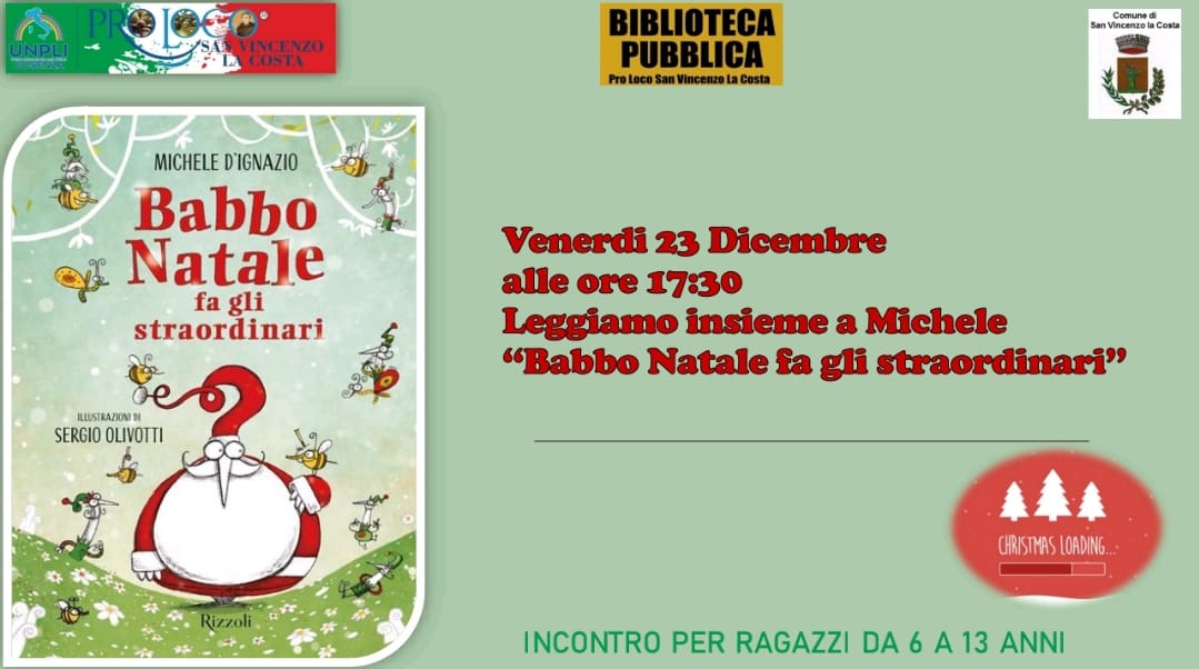23 Dicembre: San Vincenzo La Costa, incontro e lettura alla biblioteca pubblica Pro Loco, ore 17.30 (scarica la locandina)