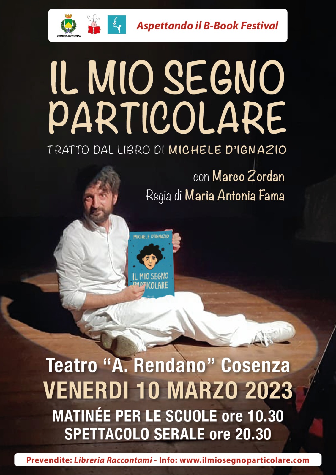 10 Marzo: Cosenza, teatro Alfonso Rendano, spettacolo “Il mio segno particolare”, ore 10.30 matinée per le scuole (scarica la scheda di adesione) e serale ore 20.30 (acquista il biglietto online)